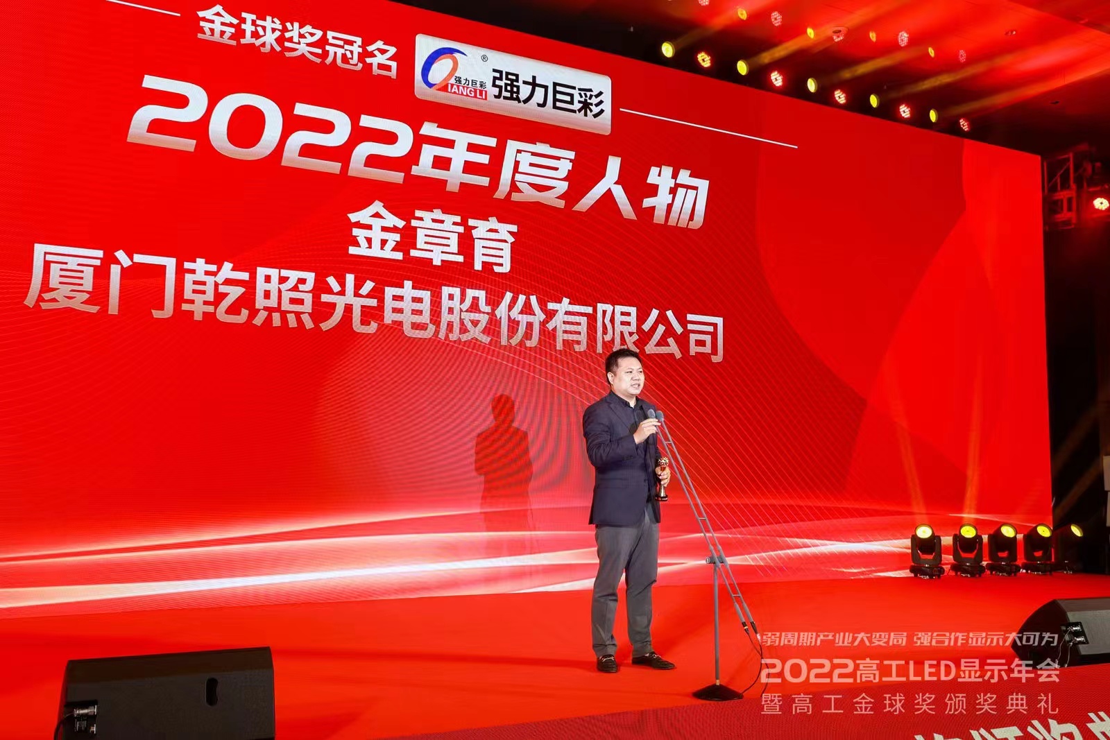 11月24日—25日,由高工LED、高工產(chǎn)研主辦,標(biāo)譜半導(dǎo)體協(xié)辦的主題為“弱周期產(chǎn)業(yè)大變局,強(qiáng)合作顯示大可為”的2022高工LED顯示年會(huì)暨2022高工金球獎(jiǎng)?lì)C獎(jiǎng)典禮在深圳盛大舉行,來自LED產(chǎn)業(yè)鏈上中下游企業(yè)的數(shù)百位嘉賓歡聚一堂,共襄盛典。乾照光電董事長金章育榮獲“2022年度人物”、乾照光電榮獲“2022年度創(chuàng)新技術(shù)”獎(jiǎng)項(xiàng)。