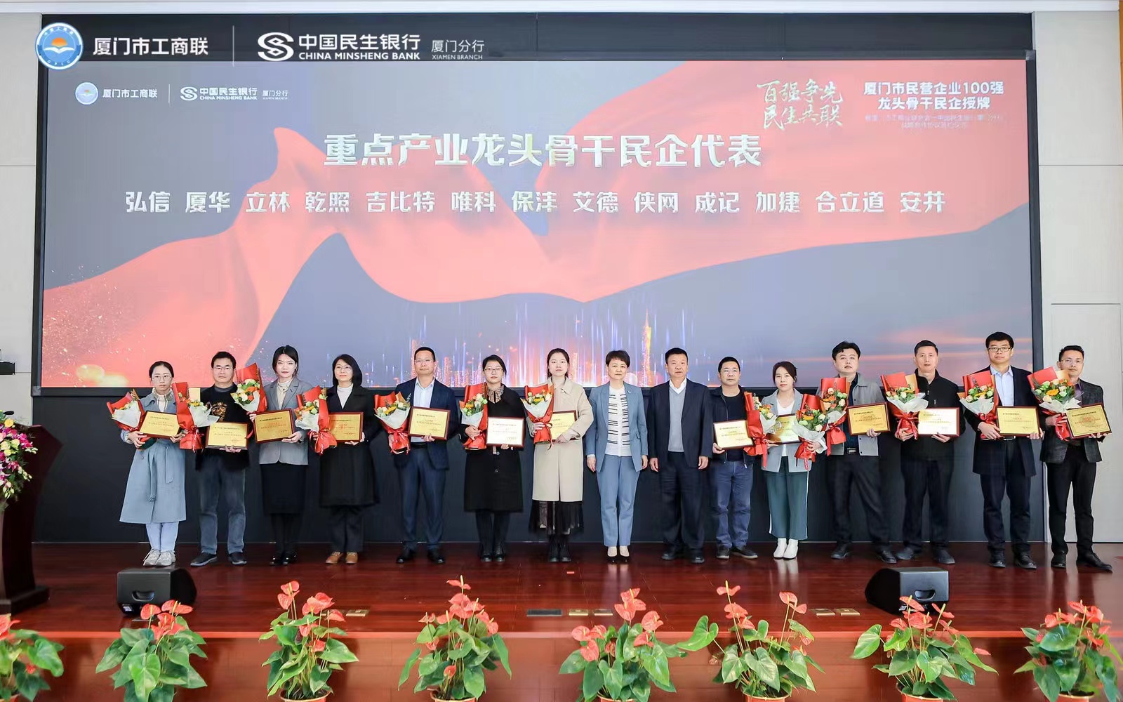 為進(jìn)一步弘揚(yáng)企業(yè)家精神,推動(dòng)民營(yíng)企業(yè)在黨的二十大精神引領(lǐng)下,開(kāi)啟新征程,奮力新發(fā)展,2月17日上午,2022廈門市民營(yíng)企業(yè)100強(qiáng)暨龍頭骨干民企授牌儀式在鷺島隆重舉行。廈門乾照光電股份有限公司榮獲 2022廈門市民營(yíng)企業(yè)100強(qiáng)第74位、2022年度廈門市重點(diǎn)產(chǎn)業(yè)(半導(dǎo)體與集成電路)龍頭骨干民營(yíng)企業(yè)。