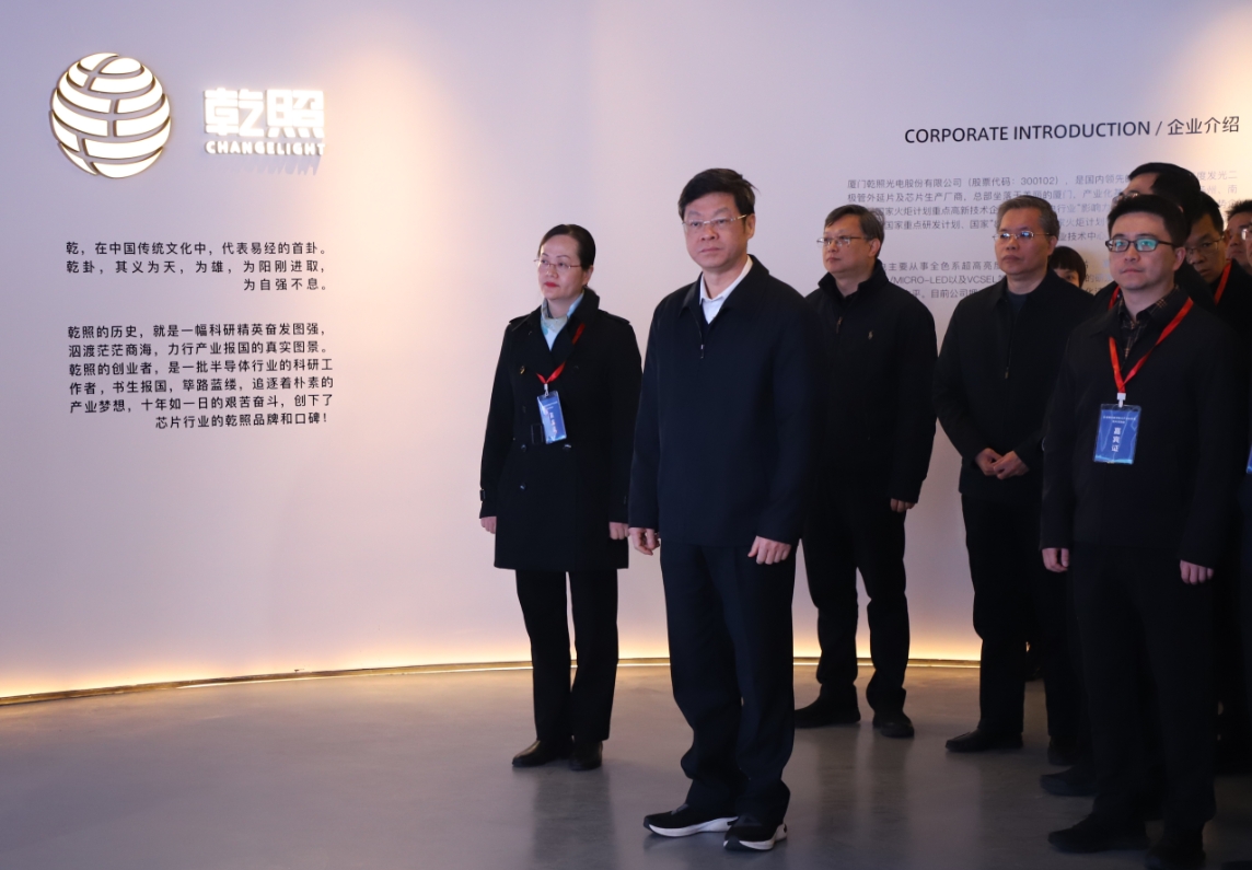為考察縣域重點(diǎn)產(chǎn)業(yè)鏈發(fā)展,1月29日福建省副省長(zhǎng)林瑞良、黨組成員康濤帶隊(duì)走訪(fǎng)乾照光電。省政府辦公廳、省工信廳、省發(fā)改委、科技廳、財(cái)政廳、省政府發(fā)展研究中心推動(dòng)縣域重點(diǎn)產(chǎn)業(yè)鏈高質(zhì)量發(fā)展專(zhuān)班成員單位有關(guān)負(fù)責(zé)同志;廈門(mén)、漳州、泉州、龍巖、三明市政府分管領(lǐng)導(dǎo)、市工信局有關(guān)負(fù)責(zé)同志及所轄區(qū)(市、區(qū))政府主要領(lǐng)導(dǎo)參加考察。乾照光電董事長(zhǎng)金章育陪同接待。